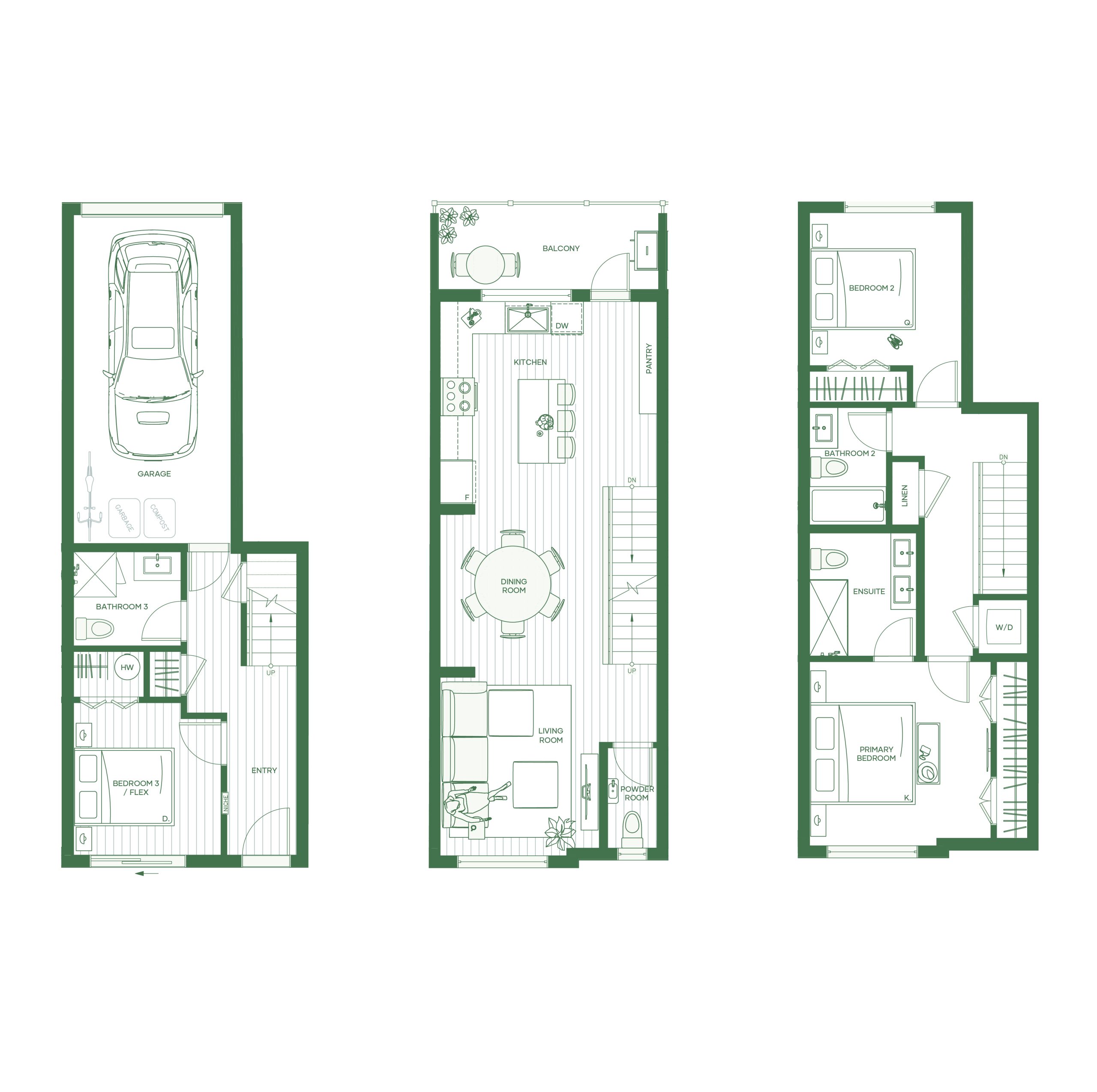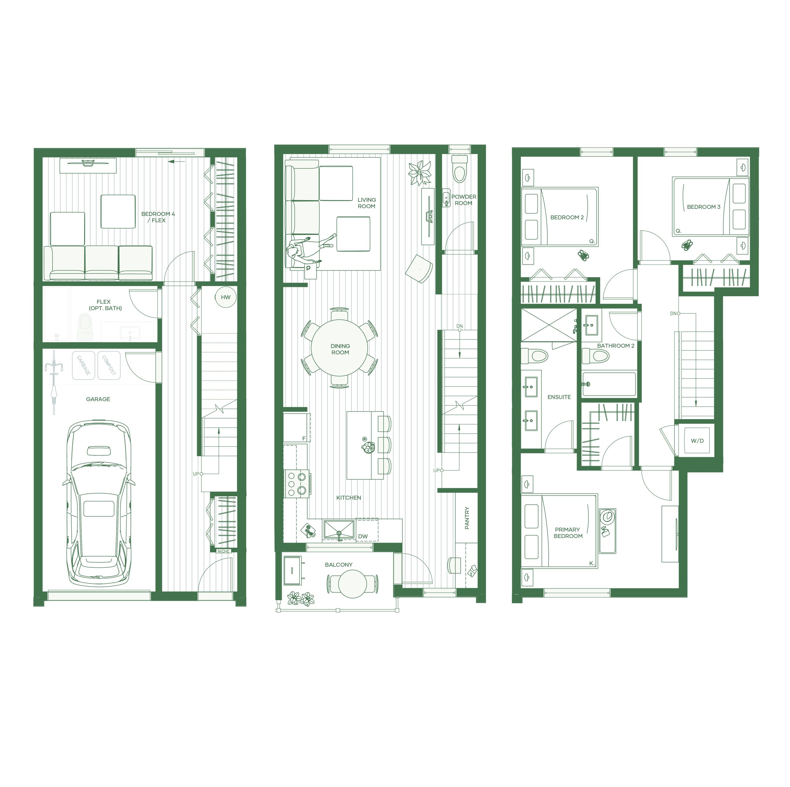 Greyson offers a thoughtful collection of 3 & 4-bedroom townhomes with flexible living areas that are suited to a variety of lifestyles. Browse a sample of the floorplans currently available.